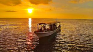 夕日を眺めながら、のんびりと楽しめる「エサ釣り」。針にエサをつけて海へ投げ、「プルプルッ」と魚が掛かる感覚を感じたら、タイミングよく合わせてリールを巻く!シンプルだけど奥が深く、大人も子供も夢中になれる釣り体験です!